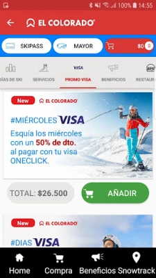La App El Colorado ofrece un conjunto de funcionalidades para optimizar tu experiencia y tus días de ski en El Colorado. Planifica tus días de esquí antes de llegar a las estaciones, compra y recarga tu skipass cómodamente desde tu móvil. Además podrás hacerte de visa oneclick, que te permitirá comprar un almuerzo sin esperas y retirar a la hora solicitada, además de pagar en un solo click.