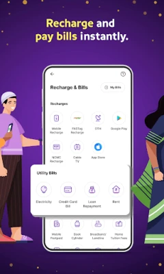 PhonePe is a payments app that allows you to use BHIM UPI, your credit card & debit card or wallet to recharge your mobile phone, pay all your utility bills and to make instant payments at your favourite offline & online stores. You can also invest in mutual funds & buy insurance plans on PhonePe. Get Car & Bike Insurance on our app.