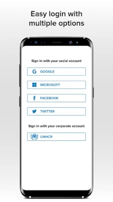 The app is easy to use thanks to its user-friendly interface. It can be used with or without an internet connection. To use the app, you must sign-in with your social network account, private email or UNHCR corporate email. The verification requires that you have an ID document at hand to be able to scan its QR code.