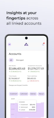 • Gain insight into your total net worth, including any linked accounts from other financial institutions, home valuation, and other non-liquid assets
