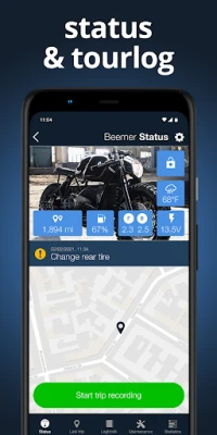 All trips as GPS trip logs, rotate to screen landscape for opening the cockpit, maintenance logbook, all your documents always at you, complete vehicle management for your motorcycle.