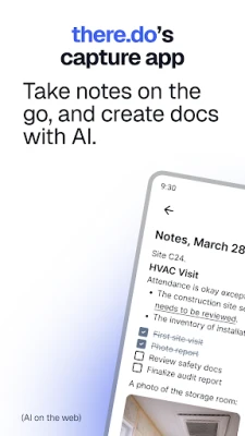 Record voice, snap photos, and write notes offline—then turn them into AI-enhanced reports. There Capture AI is the all-in-one voice notes, dictation, photo capture, and checklist app for Android. When you’re back online, everything syncs to your there.do Create workspace.