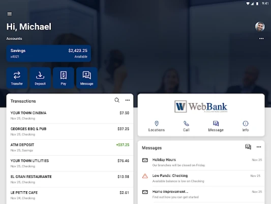WebBank Mobile Deposits is your personal financial advocate. It’s fast, secure and makes life easier by empowering you with the tools you need to manage your finances.